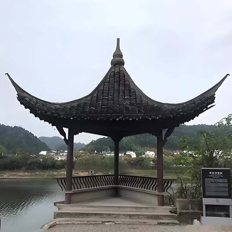 Acceptă personalizarea dimensiunilor non-standard (3000-6000 mm), acoperind formele clasice Huizhou, cum ar fi pavilioane cu patru colțuri, pavilioane cu șase colțuri și pavilioane cu opt colțuri. Opțiunile de lemn includ borneol, brad, pin conservant etc., iar tipurile de plăci pot fi personalizate cu plăci mici verzi și plăci cilindrice. Instalarea adoptă o bază de beton pentru fixarea stâlpilor, îmbinarea la fața locului a structurii cu mortare și țevi pentru a evita ca asamblarea violentă să deterioreze țepoanele. Acoperișul este așezat de plăci profesioniști conform măiestriei Huizhou pentru a asigura un drenaj neted, iar întregul păstrează regularitatea și farmecul arhitecturii antice Huizhou.